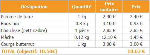 Paniers de la semaine